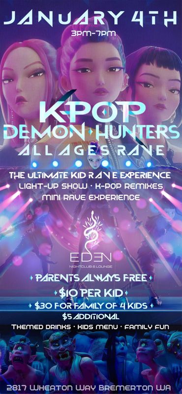 We are excited to bring Kitsap County something it's never had, but has always needed! At EDEN nightclub you will get to experience city style nightlife, without having to travel to the city! We offer specialty/themed cocktails, multiple themed nights per month, VIP tables w/ bottle service, a dance floor, FREE pool & airhockey & video game systems in our "neon jungle" themed atmosphere! Check out our fb or IG page for current events! 21+ only, no dress code.