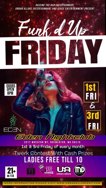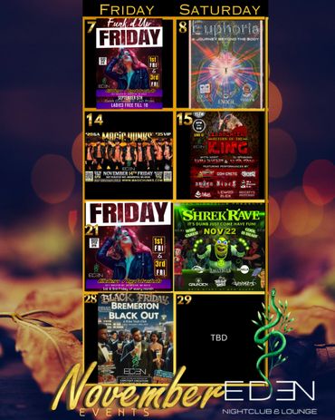We are excited to bring Kitsap County something it's never had, but has always needed! At EDEN nightclub you will get to experience city style nightlife, without having to travel to the city! We offer specialty/themed cocktails, multiple themed nights per month, VIP tables w/ bottle service, a dance floor, FREE pool & airhockey & video ga